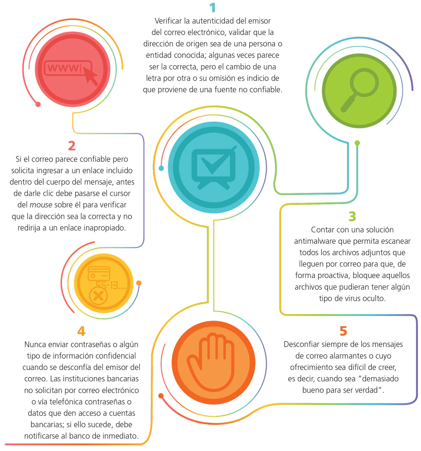 Algunas recomendaciones valiosas que deben tomarse en cuenta con el propósito de minimizar la posibilidad de ser víctimas del cibercrimen son las siguientes: